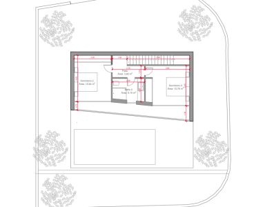 La propiedad se distribuye de manera funcional en tres niveles. La planta principal acoge un luminoso salón-comedor con cocina de concepto abierto, un dormitorio doble y un baño completo. Grandes ventanales conectan el interior con la zona exterior, permitiendo que la luz natural inunde las estancias. En la planta superior se encuentran dos dormitorios dobles adicionales que comparten un baño bien equipado. El nivel inferior destaca por un amplio garaje de 80 m², proporcionando un espacio generoso para varios vehículos y almacenamiento.