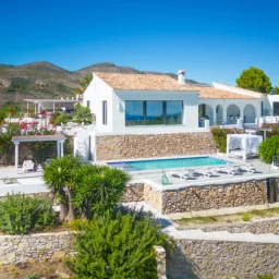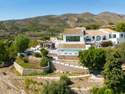 Este refinado chalet en Benissa ofrece una armonía perfecta entre el encanto tradicional mediterráneo y el lujo contemporáneo. Situada en una parcela elevada, la propiedad disfruta de impresionantes vistas panorámicas al mar Mediterráneo, las montañas circundantes y el icónico Peñón de Ifach. El exterior se caracteriza por su fachada blanca clásica, muros revestidos de piedra natural y amplias terrazas diseñadas para la vida al aire libre. Una piscina privada es el centro de la terraza inferior, rodeada de zonas para tomar el sol y jardines cuidadosamente mantenidos.