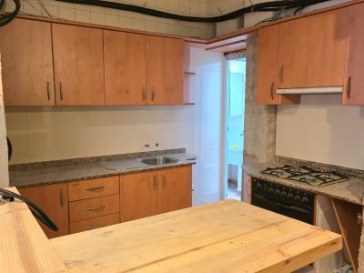 Este apartamento de planta baja en Jávea representa una excelente oportunidad de inversión para quienes buscan un proyecto de renovación. La propiedad destaca por su amplia terraza privada, un espacio exterior generoso con suelos de terracota y una pared decorativa de piedra natural, ideal para disfrutar del clima mediterráneo. El interior se encuentra actualmente en proceso de reforma, ofreciendo un lienzo en blanco para personalizar cada estancia. La distribución incluye un salón comedor con detalles de madera, una cocina funcional con armarios de madera y encimeras de granito, y varios dormitorios. El cuarto de baño ha sido parcialmente actualizado con azulejos modernos de tonos grises y una zona de ducha a ras de suelo con motivos geométricos. Ubicado en una zona urbana consolidada, se encuentra a poca distancia de todos los servicios locales.