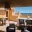 Terraza elevada con barra de granito y asientos de madera, que ofrece vistas panorámicas de la ciudad costera y el mar Mediterráneo bajo un cielo despejado.