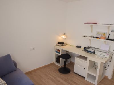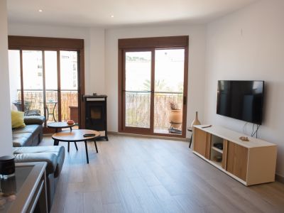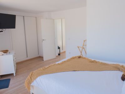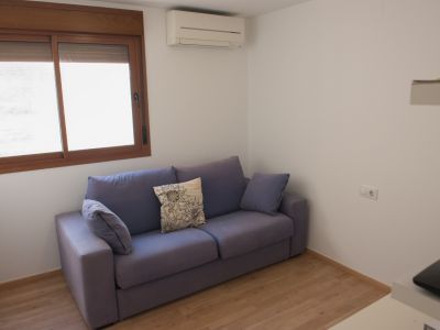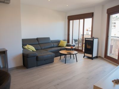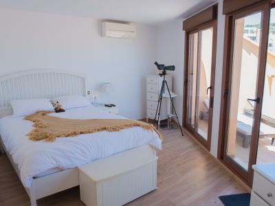 La zona de descanso incluye dormitorios bien proporcionados con armarios empotrados y sistemas de climatización independientes. Los cuartos de baño presentan acabados modernos, uno de ellos equipado con una bañera de hidromasaje y el otro con una amplia ducha a ras de suelo. El elemento más distintivo de esta vivienda es su planta superior, que alberga un extenso solárium privado. Este espacio exterior está completamente acondicionado con una cocina de verano, zona de bar y áreas de descanso, ofreciendo vistas panorámicas que abarcan desde el núcleo urbano hasta el mar Mediterráneo y las montañas circundantes. La propiedad cuenta además con una estufa de pellets en el salón, aire acondicionado por conductos y cerramientos de doble acristalamiento que garantizan el confort térmico durante todo el año.