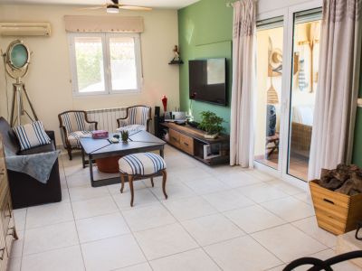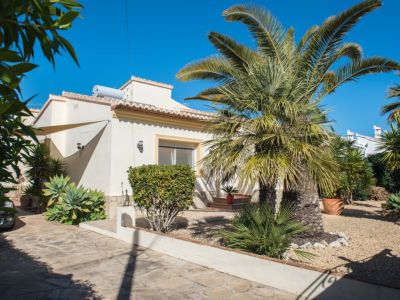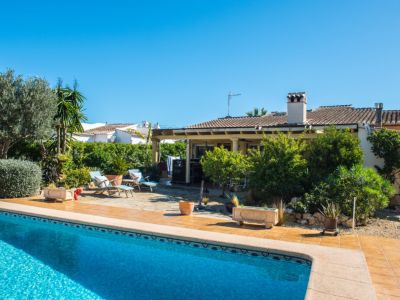 Este acogedor chalet de una sola planta se encuentra en una zona tranquila de Jávea, ofreciendo un estilo de vida mediterráneo relajado y funcional. La propiedad destaca por su excelente distribución y su conexión fluida entre los espacios interiores y exteriores. El salón-comedor es amplio y luminoso, equipado con una chimenea de piedra y calefacción central por radiadores, lo que garantiza el confort durante todo el año. La cocina, totalmente equipada con electrodomésticos modernos y una vinoteca, se abre directamente a la naya.