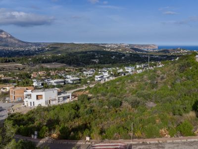 Esta excepcional parcela se encuentra en la prestigiosa zona residencial de Monte Olímpico en Jávea, una ubicación que destaca por su tranquilidad y sus impresionantes vistas panorámicas. La propiedad ofrece una perspectiva única de 360 grados: hacia el este se contempla el mar Mediterráneo y el Cabo de San Antonio; al norte, el imponente macizo del Montgó; y al oeste, el casco antiguo de Benitachell con la Sierra de Bernia como telón de fondo.