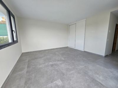 La cocina es una obra maestra del diseño funcional, con una gran isla central que sirve tanto de zona de trabajo culinario como de punto de encuentro social. Está equipada con una combinación de armarios de madera cálida y elegantes encimeras de piedra, ofreciendo un amplio espacio de almacenamiento y preparación. Junto a la cocina, un lavadero independiente aporta mayor comodidad. Los dormitorios están diseñados como retiros privados, cada uno con armarios empotrados de suelo a techo y grandes ventanales que enmarcan el paisaje circundante. Los baños están acabados con un estándar excepcional, utilizando materiales modernos, duchas a ras de suelo con mamparas de cristal y lavabos de diseño.