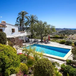El exterior es un verdadero refugio privado. La zona de la piscina ha sido recientemente renovada con un pavimento moderno que contrasta elegantemente con la fachada tradicional de la casa. Rodeada de un jardín maduro con palmeras y vegetación autóctona, la propiedad ofrece múltiples zonas de descanso, incluyendo pérgolas sombreadas y un patio interior íntimo ideal para desayunos al aire libre. La orientación de la finca permite disfrutar de puestas de sol espectaculares sobre las montañas circundantes y una vista despejada del horizonte marino. Es una oportunidad única para quienes buscan una residencia con alma, privacidad y una conexión profunda con el paisaje de la Costa Blanca.