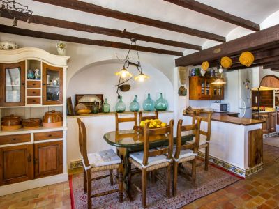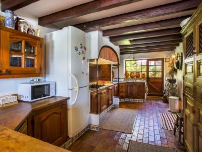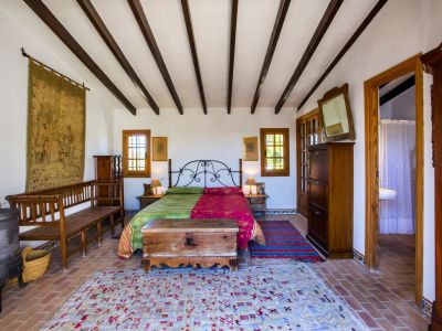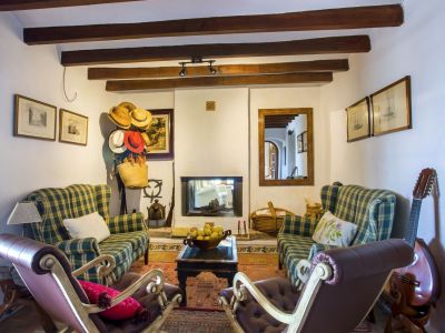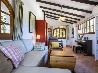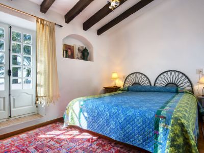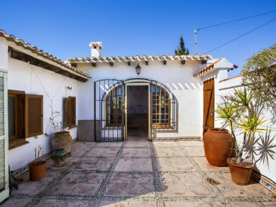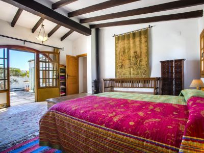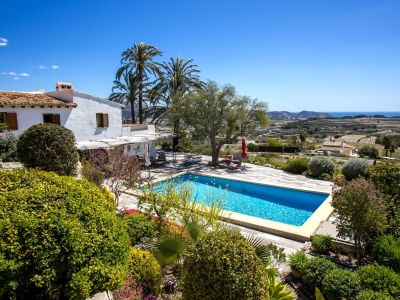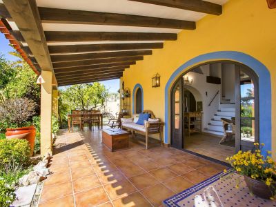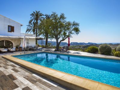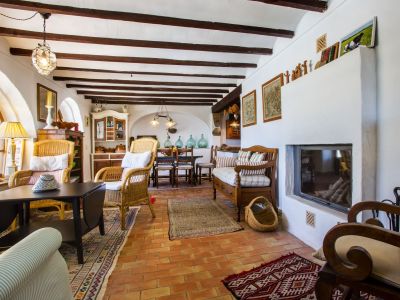 Esta propiedad representa la esencia de la arquitectura mediterránea tradicional en Jávea. Situada en una posición elevada que ofrece vistas panorámicas al mar y al valle, esta finca combina el encanto rústico con amplios espacios exteriores. La vivienda principal se caracteriza por sus gruesos muros blancos, techos con vigas de madera vista y suelos de barro cocido que mantienen una temperatura agradable durante todo el año. El salón principal cuenta con una chimenea de obra, creando un ambiente acogedor que fluye hacia el comedor y una cocina de estilo rústico totalmente equipada. La distribución interior es orgánica, con rincones llenos de carácter y dormitorios que disfrutan de luz natural y acceso directo a las terrazas.